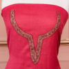 At the heart of this piece is its stunning Kashmiri Aari embroidery, meticulously worked by skilled artisans. The intricate neckline pattern features delicate threadwork in gold-toned accents, creating a refined contrast against the bold maroon base. Each stitch reflects generations of craftsmanship, making this fabric not just attire—but an heirloom of artistry.