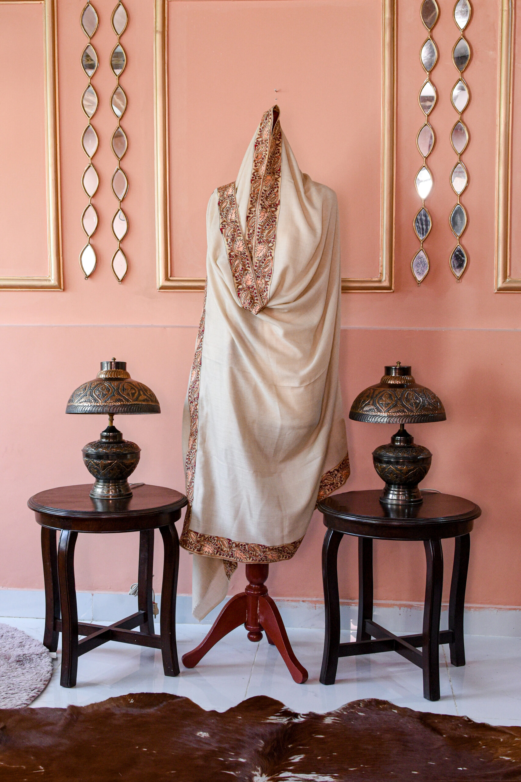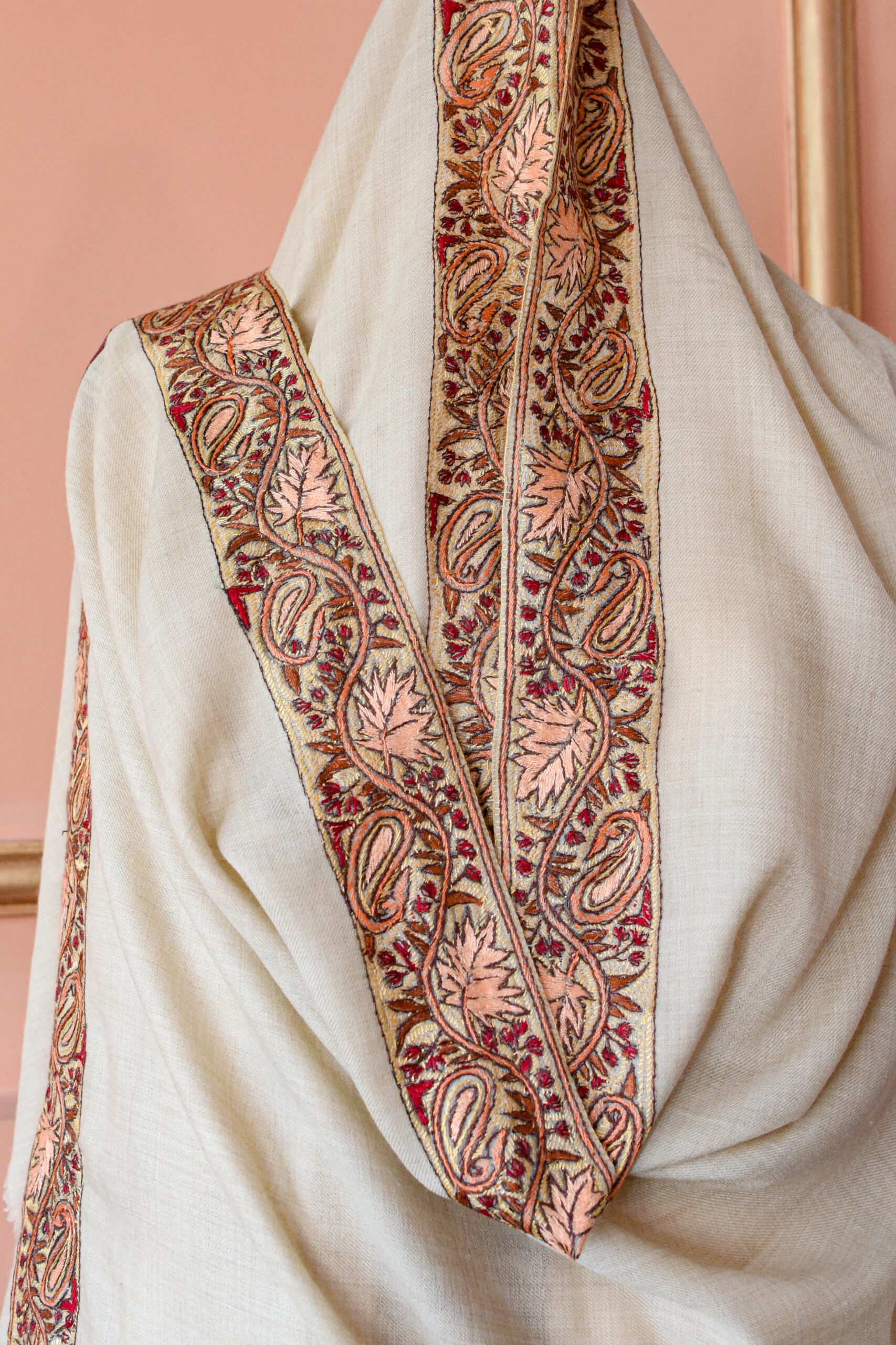 Wrap yourself in timeless elegance with our handcrafted shawl, exquisitely detailed with fine hand embroidery along the borders. Made from soft, beautifully draping fabric, this piece blends luxury with tradition in every fold. Its warmth and feather-light comfort make it perfect for both everyday wear and special occasions. Celebrate cultural artistry with a design that honors generations of craftsmanship while adding a refined touch to modern fashion,